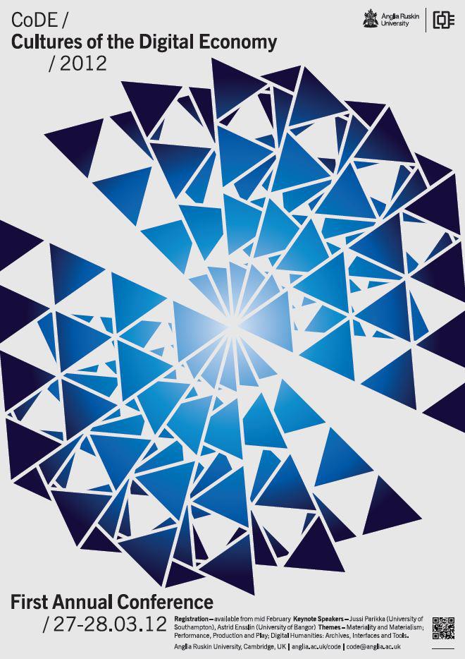 The event is sponsored by CoDE: the Cultures of the Digital Economy research institute and the Department of English, Communication, Film and Media at Anglia Ruskin University.