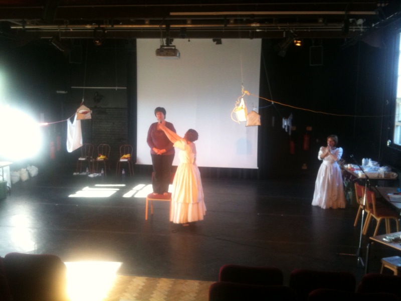 A 6-hour durational performance devised and performed by Kerstin Bueschges, Jan Farrar and Sandra Flores. The audience is free to come and go as they please. “
