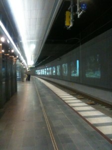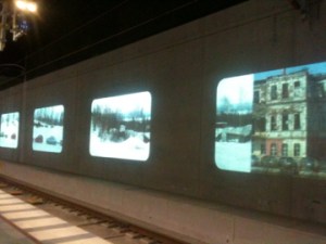 I was lucky to visit Malmö (and the Medea Lab too) to talk about media archaeology just a couple of days ago and on the way back saw this attractive public art projection of remediative proportions. At the Malmö train station platform a projection that imitates the windows of a screen is a nod towards the train passenger’s view as cinematic glimpse into landscapes, people, things passing by, as well as a form of cinematic spectatorship where the projection wall could be seen as stabilized frames – a frozen film, or actually where the frames are frozen but the image magically carries on. As such, the train platform was a great location for this as a small but somehow silently beautiful nod to this historical conjunction between technologies of transport and technologies of vision. How we move (and are moved) is mediatic as well.